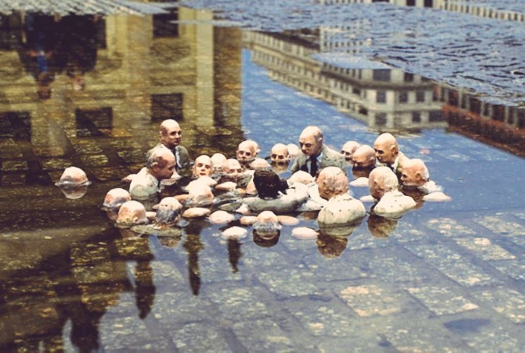 To some, this image represents, whether through denial or delay, how politicians and corporate leaders are carrying on with business as usual, maintaining the status quo despite knowing the consequences. In that respect, it reminds me of Isaac Cordal's 'Politicians Discussing Global Warming' sculpture in Berlin.